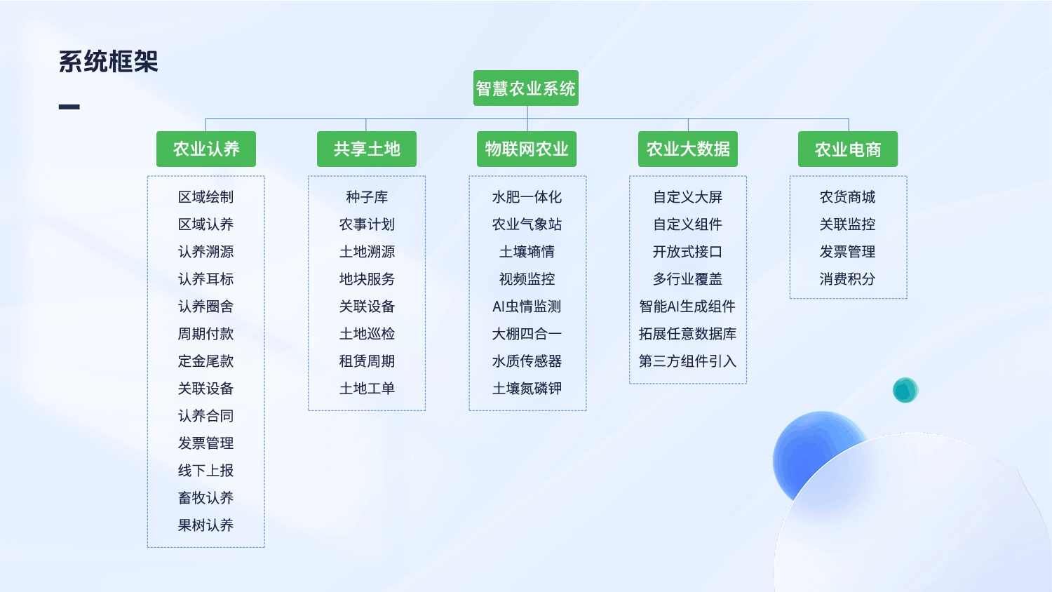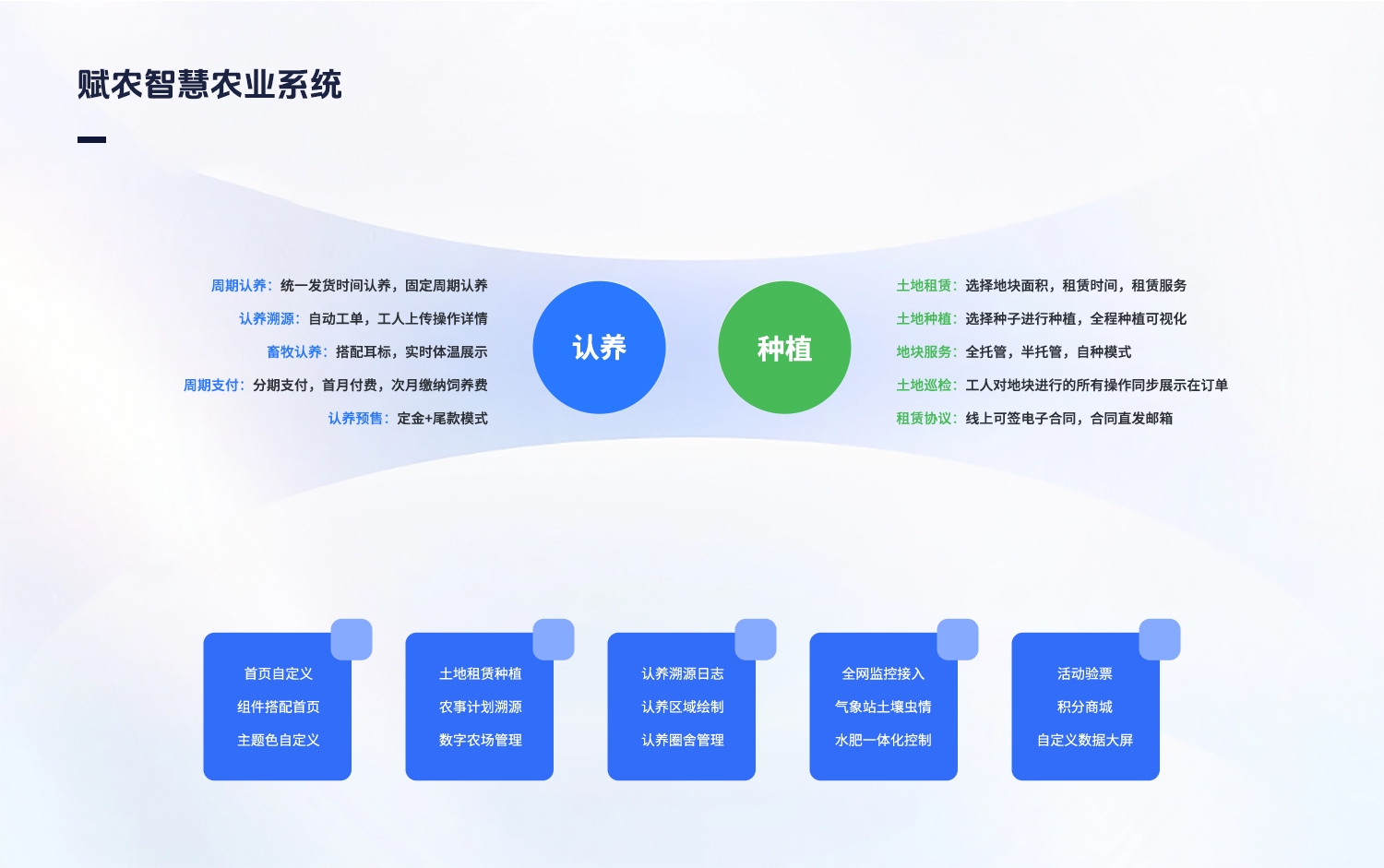 | 数字农场 | 农事工单系统、溯源大屏、电商积分商城 | 生产-销售-服务一体化管理增效 |