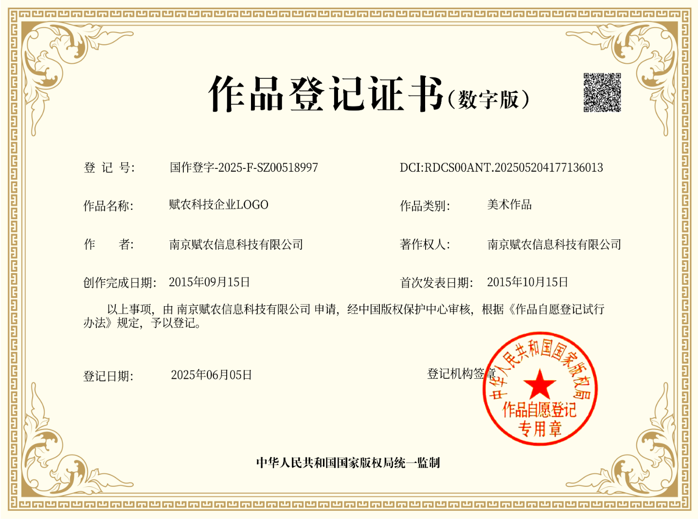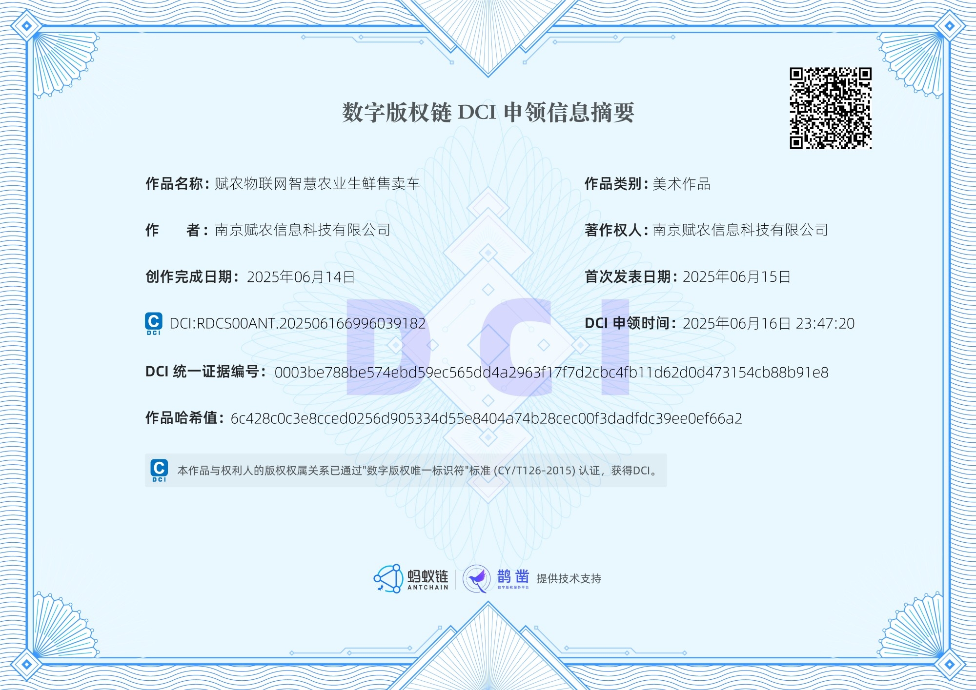 数字版权链DCI证书-赋农科技企业LOGO