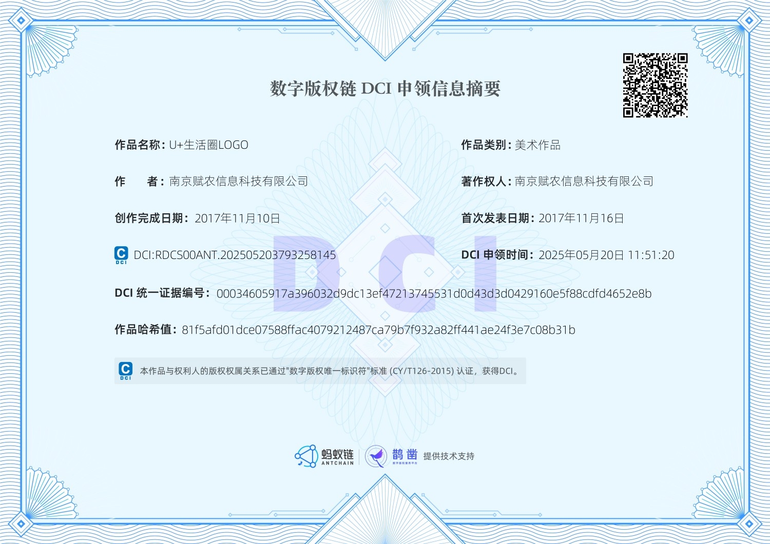 数字版权链DCI证书-U+生活圈LOGO